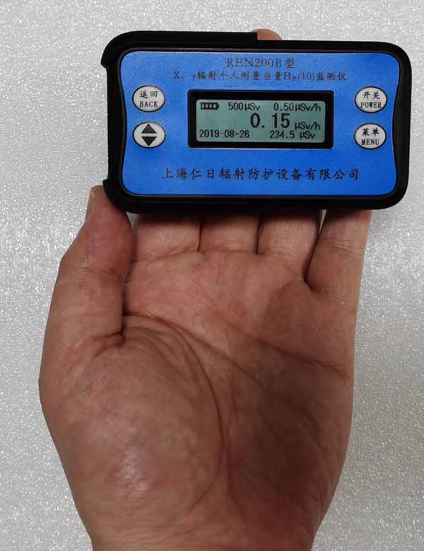 REN200B型X、γ輻射個(gè)人劑量當(dāng)量HP(10)監(jiān)測儀(簡稱:個(gè)人劑量報(bào)警儀)內(nèi)置高量程蓋格計(jì)數(shù)管為探測器,主要用來監(jiān)測各種放射性工作場所的X、γ以及硬β射線的輻射,具有較寬的測量范圍。能顯示工作場所的劑量當(dāng)量率和累積劑量,更換電池時(shí),日期及累積數(shù)據(jù)能永久保存?蛇x配RenRiPersonal個(gè)人劑量管理軟件,該軟件可存儲(chǔ)多個(gè)人的歷史數(shù)據(jù),能記錄日累積、月累積、年累積、輻照時(shí)長、計(jì)算平均劑量率、扣除或不扣除本底輻射,且以文字和圖譜的方式展現(xiàn)數(shù)據(jù)。廣泛應(yīng)用于核電站、加速器、鋼鐵、化工、同位素應(yīng)用、工業(yè)X、γ無損探傷、放射醫(yī)療、鈷源治療、γ輻照、放射性實(shí)驗(yàn)室、核設(shè)施周圍環(huán)境監(jiān)測等領(lǐng)域中的工作人員進(jìn)行個(gè)人安全防護(hù)監(jiān)測及放射性提示。